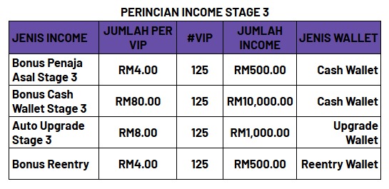 (3) Stage 3 – RM1,000 × 125 VIP = RM12,500